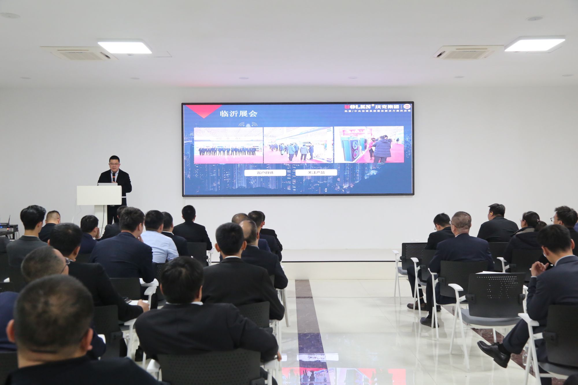 随后,为了进一步展示沃克的创新成果,进一步夯实业务人员深拓市场的资源,沃克集团研发中心的工程师们为现场营销人员做了重点产品和创新产品技术讲座。其中,李新炎工程师重点介绍了沃克的组合受空调机组,王博工程师重点推介了沃克170型全直流变频商用空气源热泵。通过这两款拳头产品的现场推介和互动问答,让现场营销精英们对市场更加底气十足,信心满满。